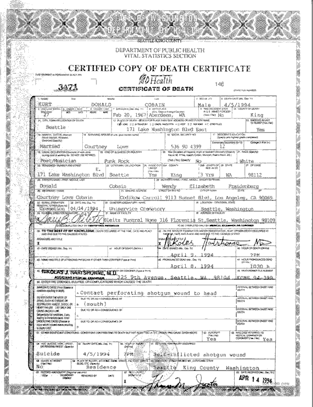 | Smiley's Nirvana Page | Montage of Heck | Kurts Death Cert. |